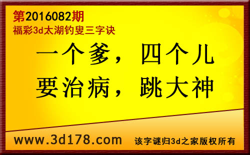 福彩3d第2016082期太湖图库解字谜详解: