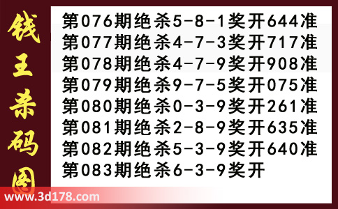 该钱王杀码图由3D之家3D图库频道原创,仅供彩民参考,温馨提供。
