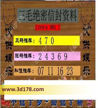 福彩3d第084期三毛绝密信封资料图详解: