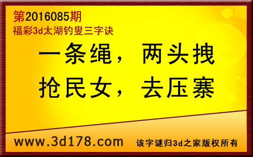 福彩3d第2016085期太湖图库解字谜详解: