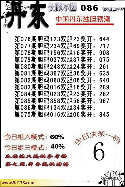 福彩3d第2016086期丹东解析: