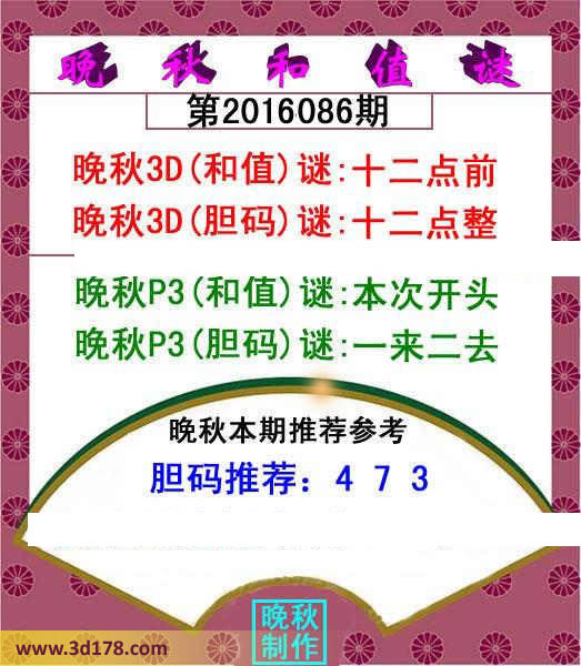 晚秋3D(胆码)谜:十二点整