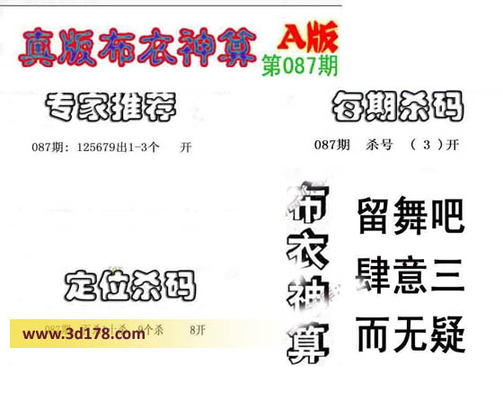 3d之家布衣图库之布衣神算图第2016087期详解:专家推荐:
