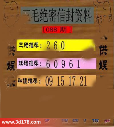 福彩3d第088期三毛绝密信封资料图详解:三码推荐:260