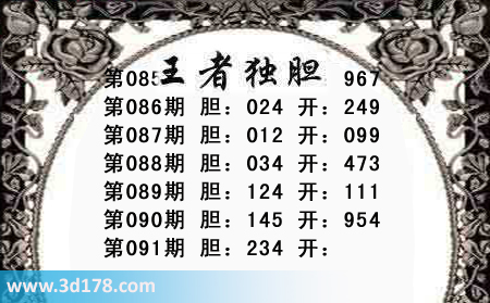 3d之家第091期王者独胆图推荐胆码: