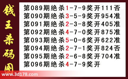 近期3d钱王杀码具体详情: