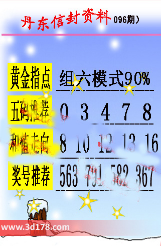 福彩3d第096期丹东信封图如下所示:
