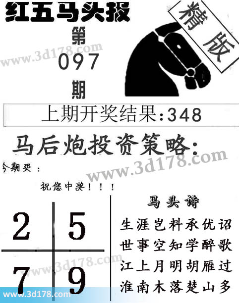 3d第2016097期红五马头报本期马头诗详解:上期开奖号码:348马头诗: