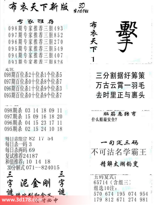 2016098期福彩3d布衣天下新版: