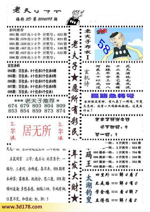 3d第2016098期老夫子布衣预测今日必下胆码图: