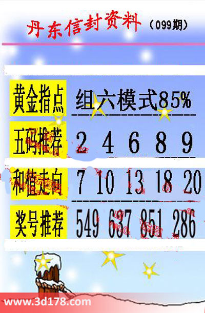 福彩3d第099期丹东信封图如下所示: