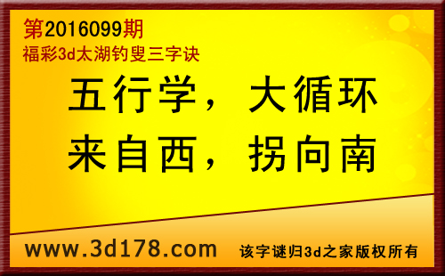 福彩3d第2016099期太湖图库解字谜详解:五行学:五行学说讲的是阴阳是平衡,既然要平,解1;