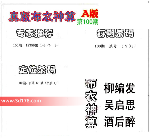 3d之家布衣图库之布衣神算图第2016100期详解: