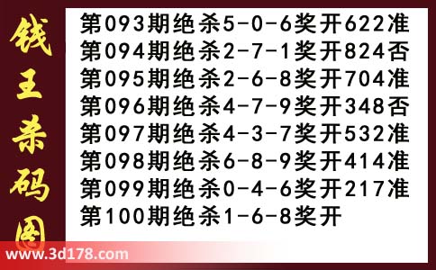 近期3d钱王杀码具体详情: