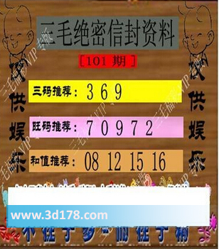 3d之家第2016101期三毛绝密信封资料图:福彩3d第16101期三毛绝密信封资料图详解:三码推荐:369旺码推荐:70972和值推荐:08 12 15 16三毛图库由3d之家3d图库频道原创,仅供彩民参考,温馨提供。