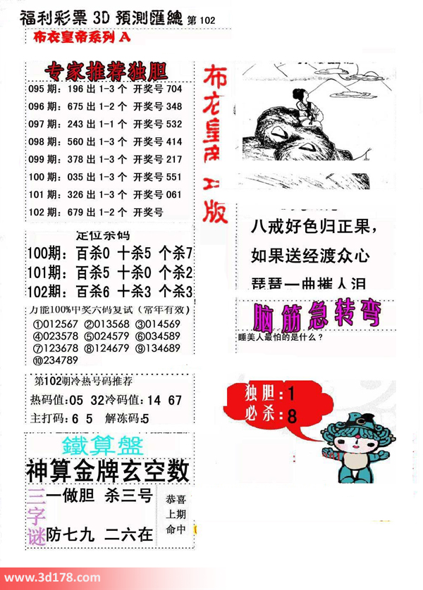 福彩3d第2016102期布衣天皇帝A版布衣专家独家推荐:
