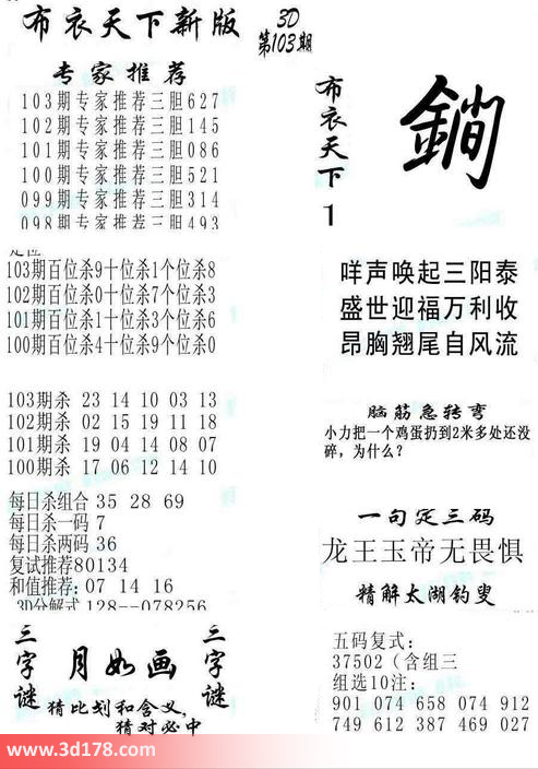2016103期福彩3d布衣天下新版: