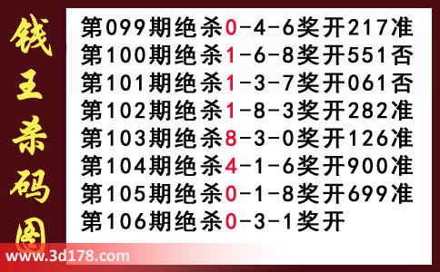 近期3d钱王杀码具体详情: