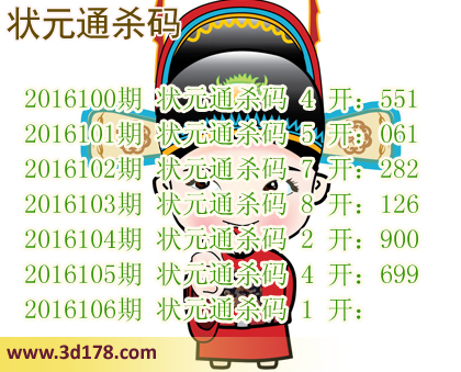 3d之家杀码图库第106期状元通杀码图: