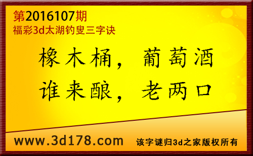 福彩3d第2016107期太湖图库解字谜详解: