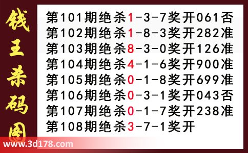 近期3d钱王杀码具体详情: