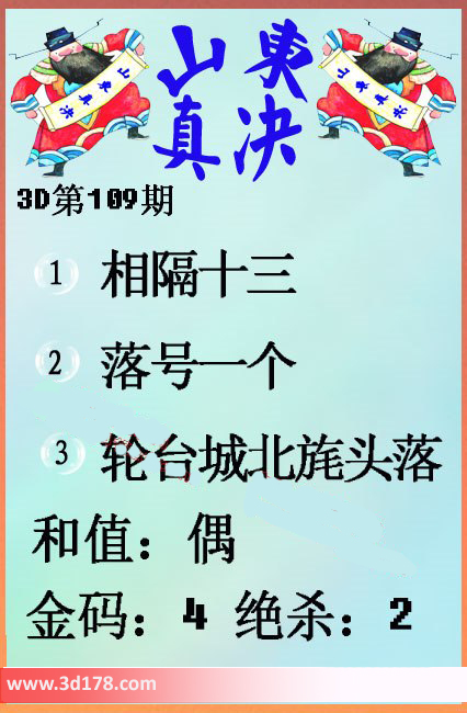 3d第2016109期山东真诀图金码推荐:1、相隔十三