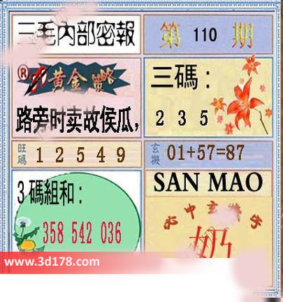 3d之家三毛图库第16110期三毛内部密报图详解: