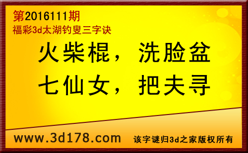 福彩3d第2016111期太湖图库解字谜详解:火柴棍:火柴棍是一根一根的,形解1;