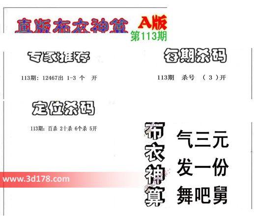 3d之家布衣图库之布衣神算图第2016113期详解: