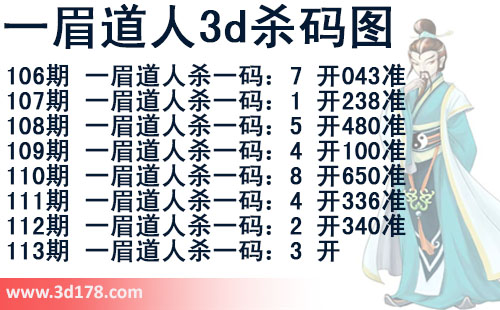 该一眉道人3d杀码图由3d之家3d图库频道原创,仅供彩民参考,温馨提供。