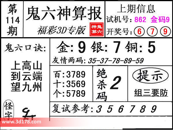 3d第16114期鬼六神算报为您推荐鬼六口诀: