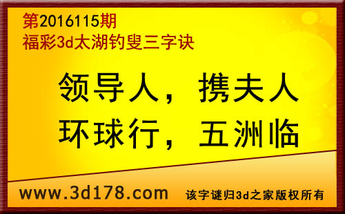 福彩3d第2016115期太湖图库解字谜详解:领导人:领导人即是带头人,解数字1或者0;