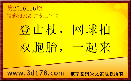 福彩3d第2016116期太湖图库解字谜详解:登山杖:登山所用的木杖,木笔划解4;