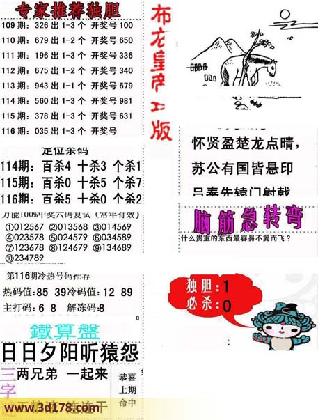 福彩3d第2016116期布衣天皇帝A版布衣专家独家推荐: