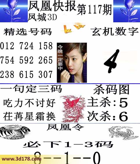 福彩3d凤凰快报图第16117期精选号码推荐: