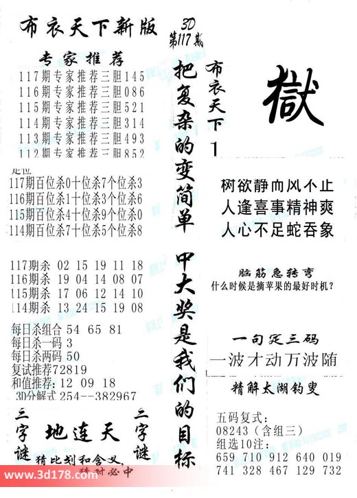 2016117期福彩3d布衣天下新版: