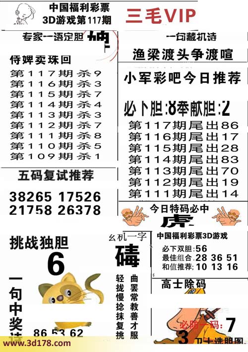 第2016117期3d三毛图库为您解读本期专家一语定胆: