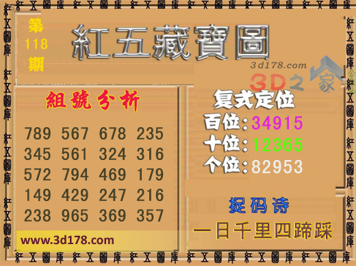 3d之家3d红五藏宝图第2016118期为您推荐复式定位、捉码诗以及组号分析: