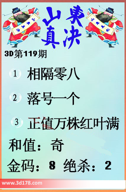福彩3d第119期山东真诀图如下所示: