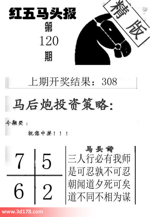 3d第2016120期红五马头报本期马头诗详解:上期开奖号码:308