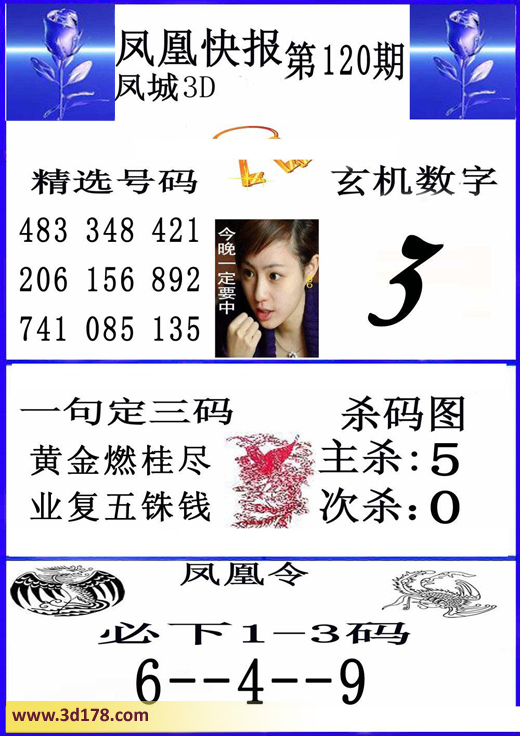 福彩3d凤凰快报图第16120期精选号码推荐: