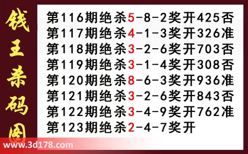 近期3d钱王杀码具体详情: