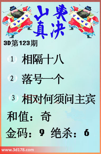 福彩3d第123期山东真诀图如下所示: