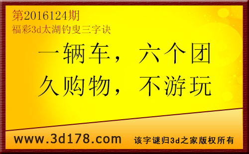 福彩3d第2016124期太湖图库解字谜详解: