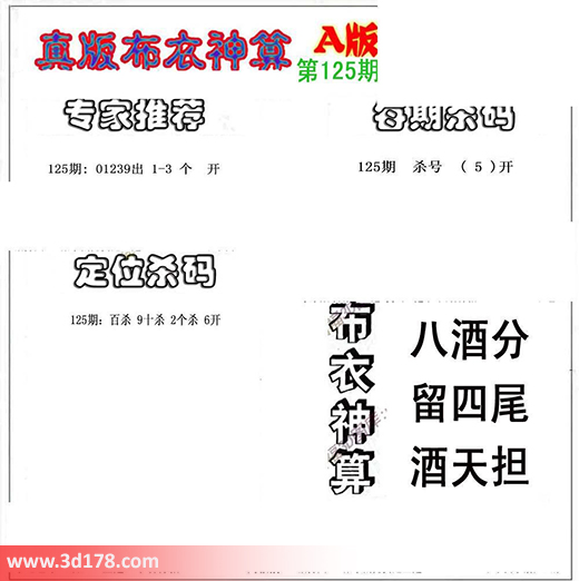 3d布衣神算第125期定位杀码:3d之家布衣图库之布衣神算图第2016125期详解:专家推荐:125期:01239出 1-3 个 定位杀码:125期:百位杀 9 十位杀 2 个位杀 6每期杀码:杀一码5布衣神算:八酒分,留四尾,酒天担。该布衣图库由3d之家3d图库频道原创,仅供彩民参考,温馨提供。