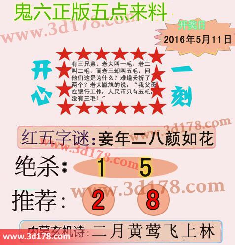 3d鬼六图库第16125期鬼六正版五点来料图: