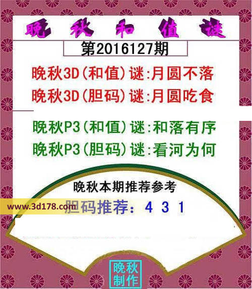晚秋p3(和值)谜:和落有序