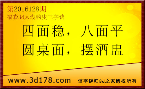 福彩3d第2016128期太湖图库解字谜详解: