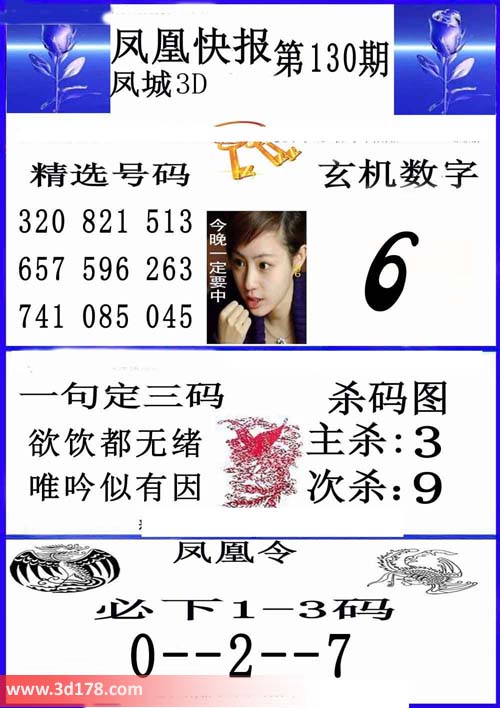 福彩3d凤凰快报图第16130期精选号码推荐: