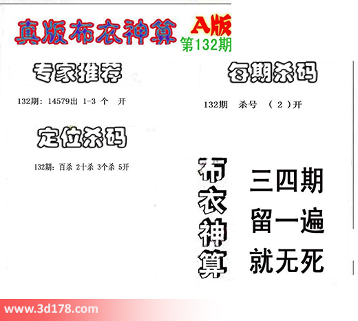 3d之家布衣图库之布衣神算图第2016132期详解:专家推荐: